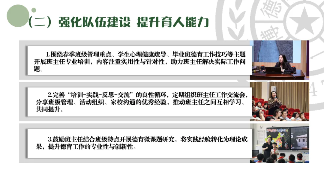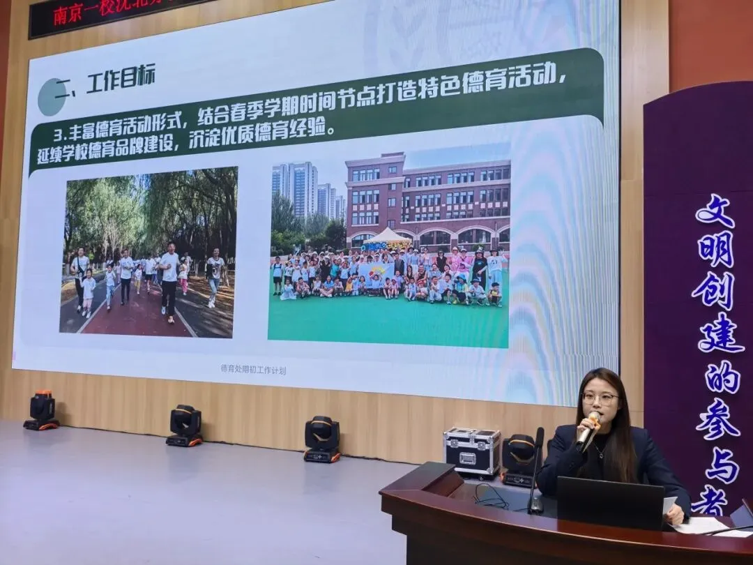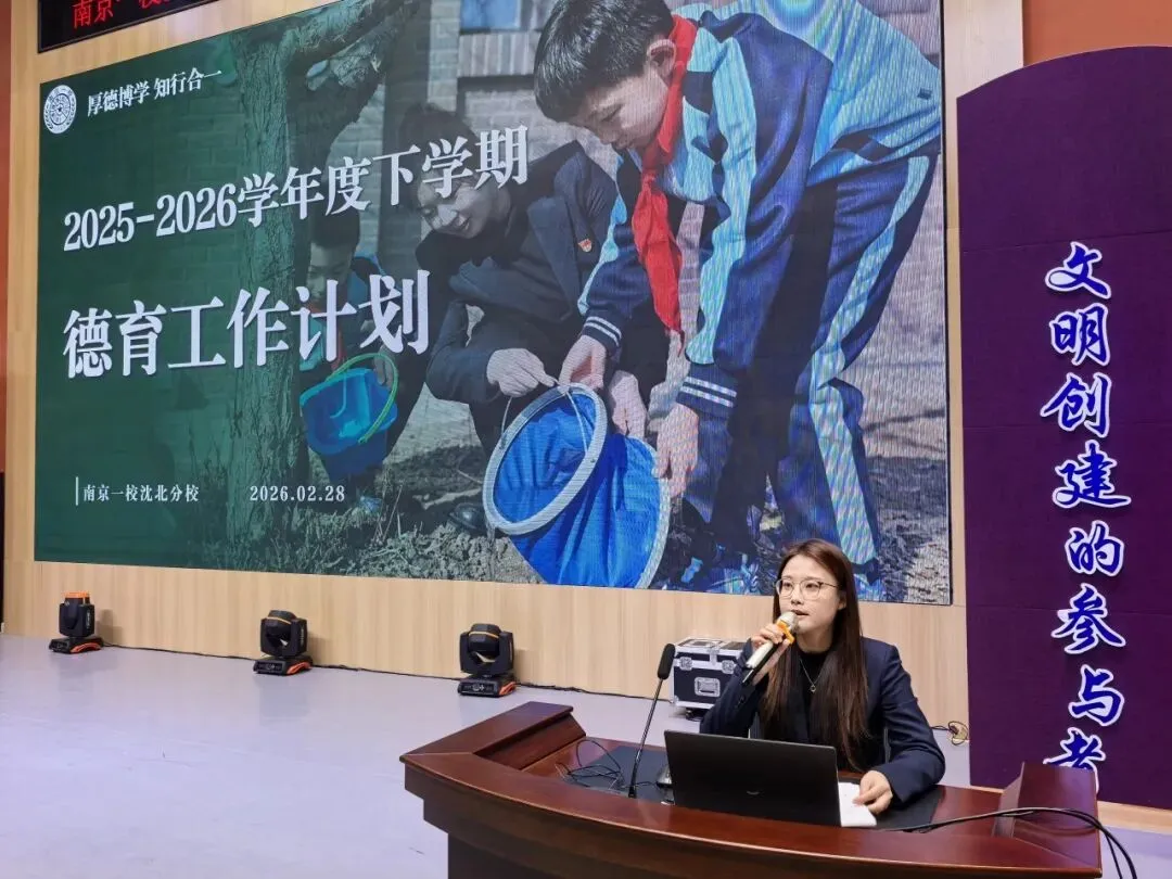 德育处张玮芳主任为大家解读了本学期德育工作目标和具体工作措施。牢牢把握五大育人内容、依托六大育人途径,坚持德育为先、五育并举,将常规教育与特色活动深度融合,切实提升德育工作的针对性与实效性。
