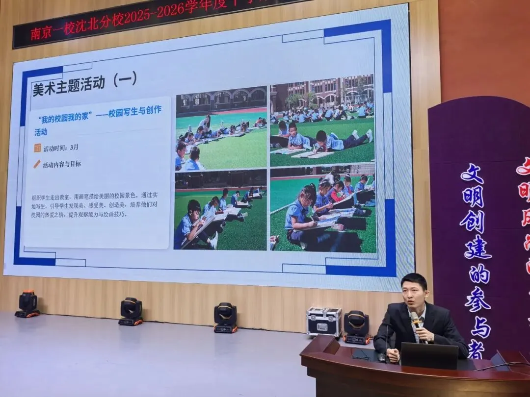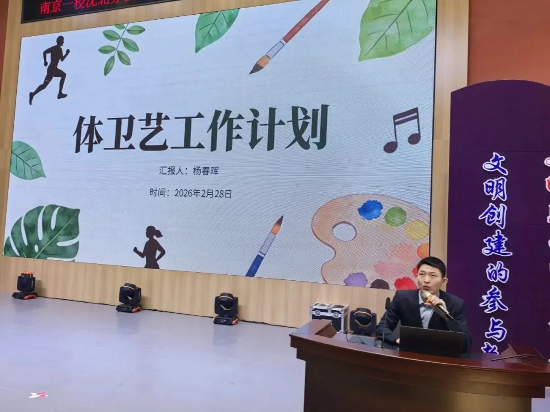 体卫艺杨春晖主任就本学期体卫艺工作进行专项部署,重点介绍了体育赛事、卫生保障、艺术实践三大领域的具体安排:以“校长杯”足球赛为抓手活跃校园体育氛围,以高标准完成开学前卫生保障工作守护师生健康,以校园写生与创作活动点亮校园艺术生活,推动体卫艺工作落地见效、亮点纷呈。
