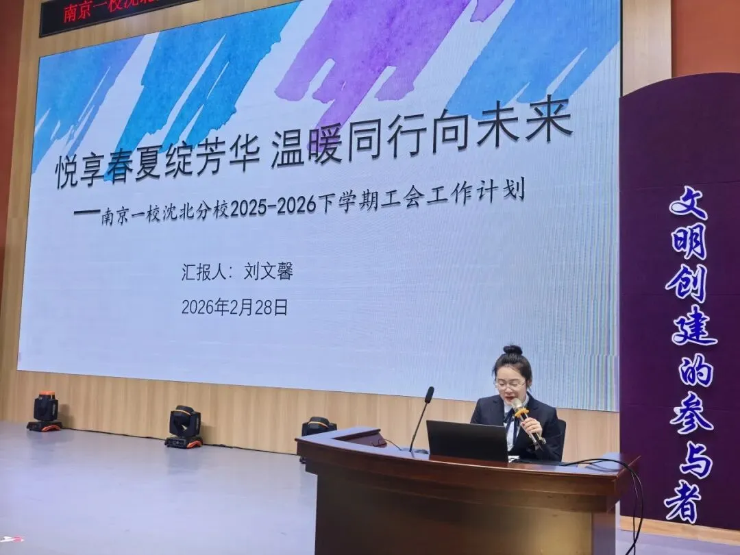 校长助理刘文馨以“悦享春夏绽芳华 温暖同行向未来”为题向大家汇报了本学期工会工作计划。她详细为大家讲解了新学期师生用餐、工会活动以及工会福利、互助保障四个方面的工作安排。