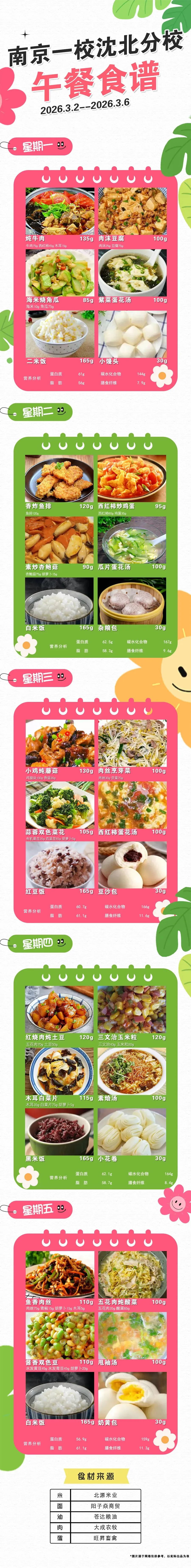 【南三·营养午餐】南京三校2026.3.2-2026.3.6营养午餐食谱