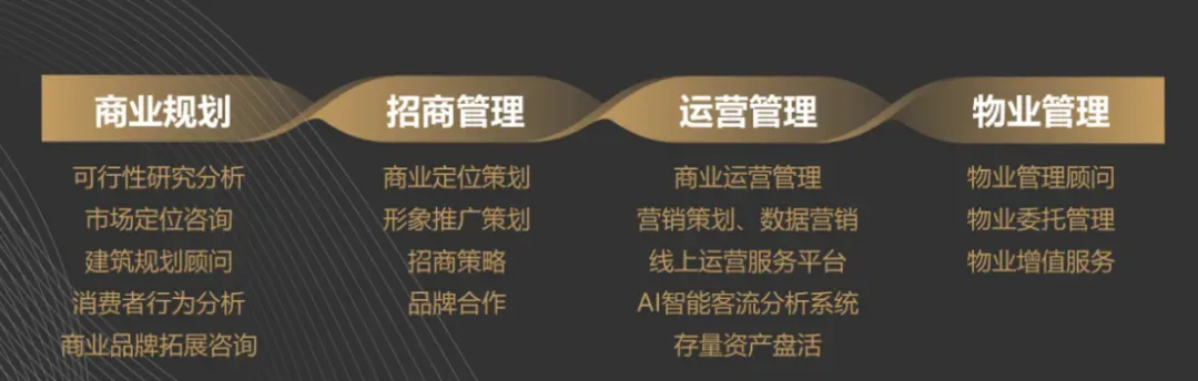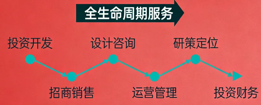 升级营销服务标准,建立“全生命周期服务”体系——覆盖从投资开发、设计咨询、研策定位,到招商销售、运营管理、投资财务的全链条。