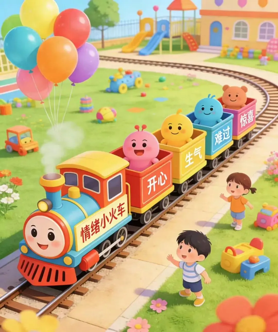 我们的做法: 老师们会在开学初通过趣味游戏、绘本故事、情绪卡片等方式,引导孩子识别和表达自己的情绪。比如通过“情绪小火车”游戏,让孩子用不同颜色代表“开心”、“生气”、“难过”等情绪,帮助他们学会认知和管理情绪 。