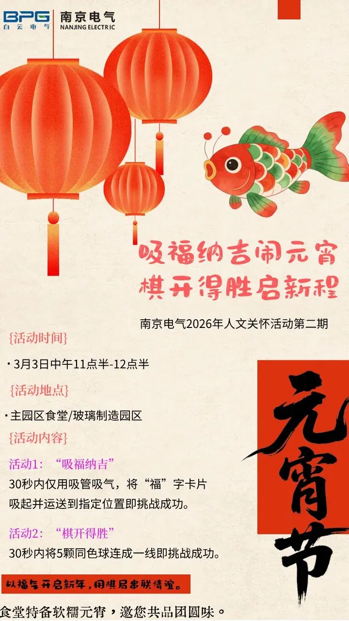 “吸福纳吉闹元宵,棋开得胜启新程”南京电气2026年人文关怀活动第二期暖心开启,邀你一起嗨翻天!🎉