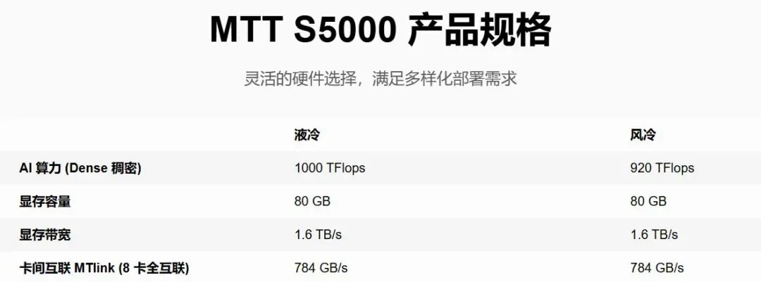 2月中旬,摩尔线程首次披露MTT S5000的硬件性能参数。
