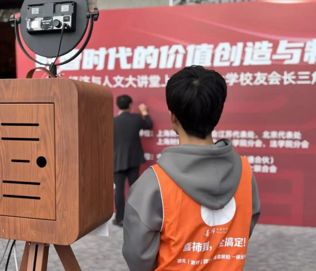 2025年,他敏锐捕捉到各类活动场景中人们对情感连接的需求,创新性地创立“喜柿互拍”品牌,将自身深耕多年的设计美学与前沿互动科技相结合,推出现场拍照、即时打印、氛围营造一体化服务。