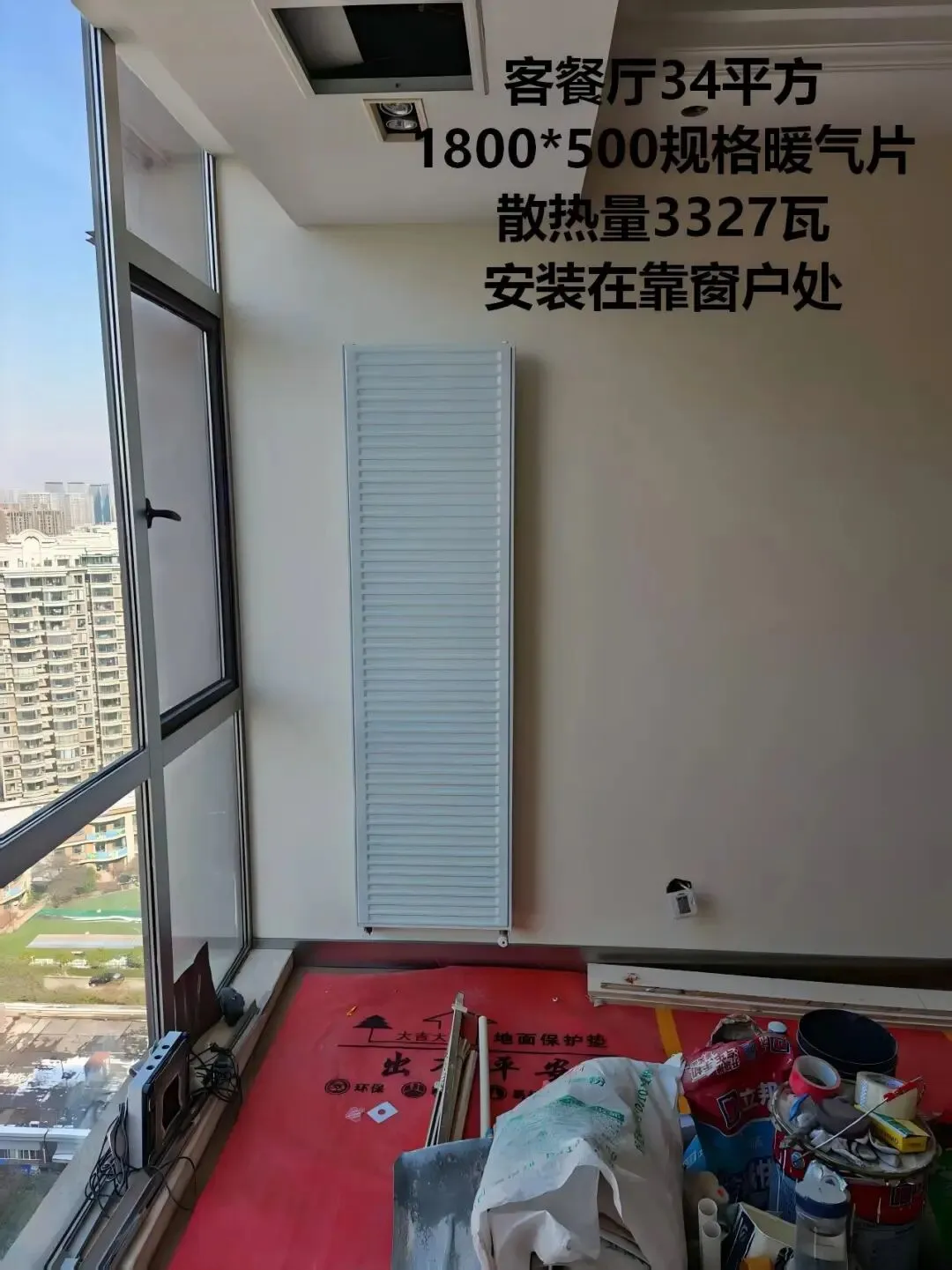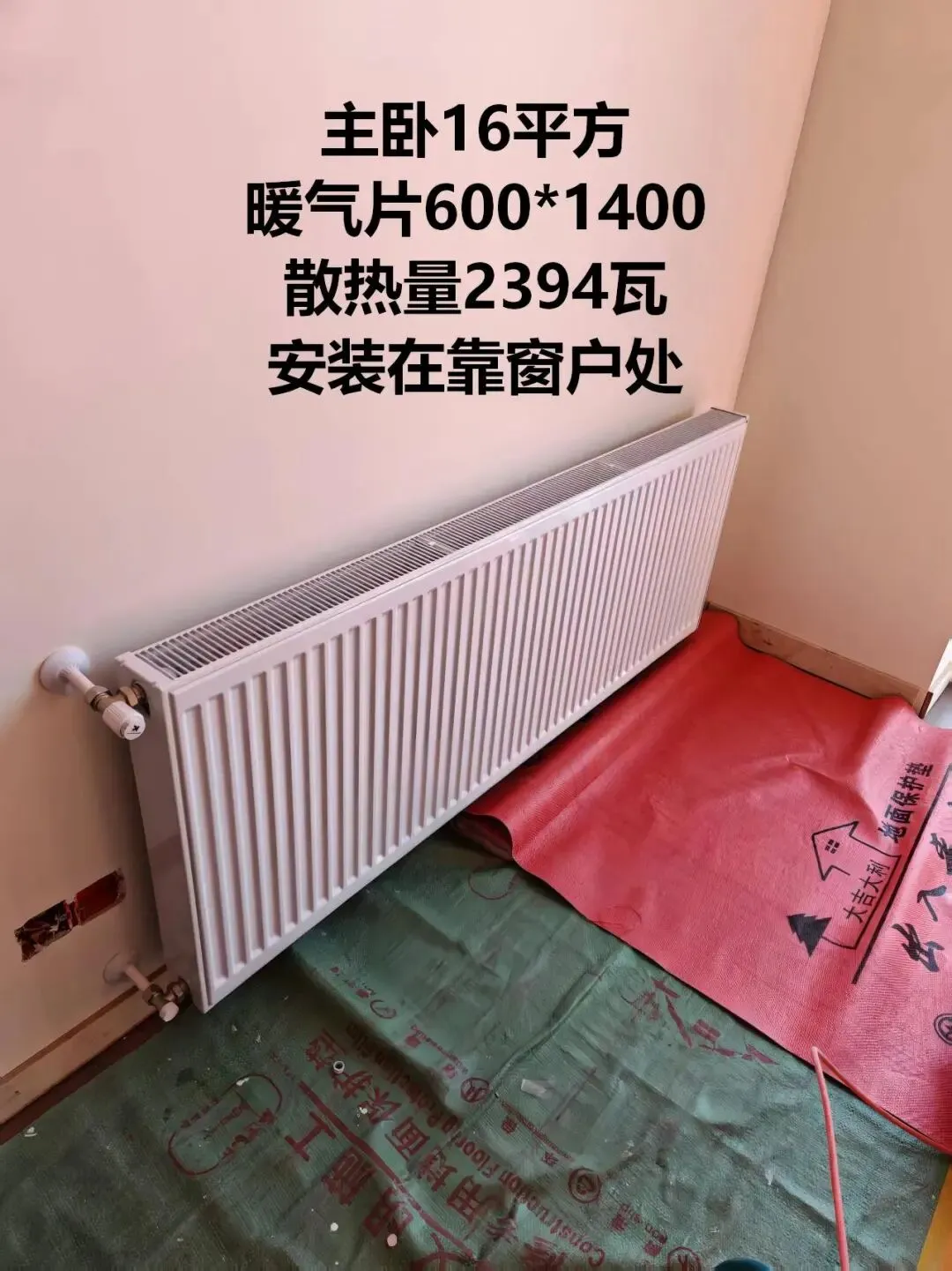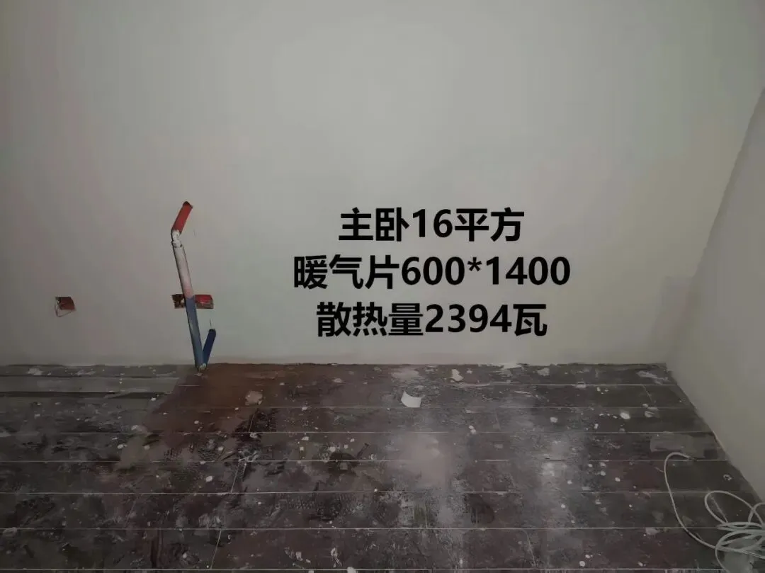 •主卧 16㎡:600×1400,散热量 2394W,靠窗安装