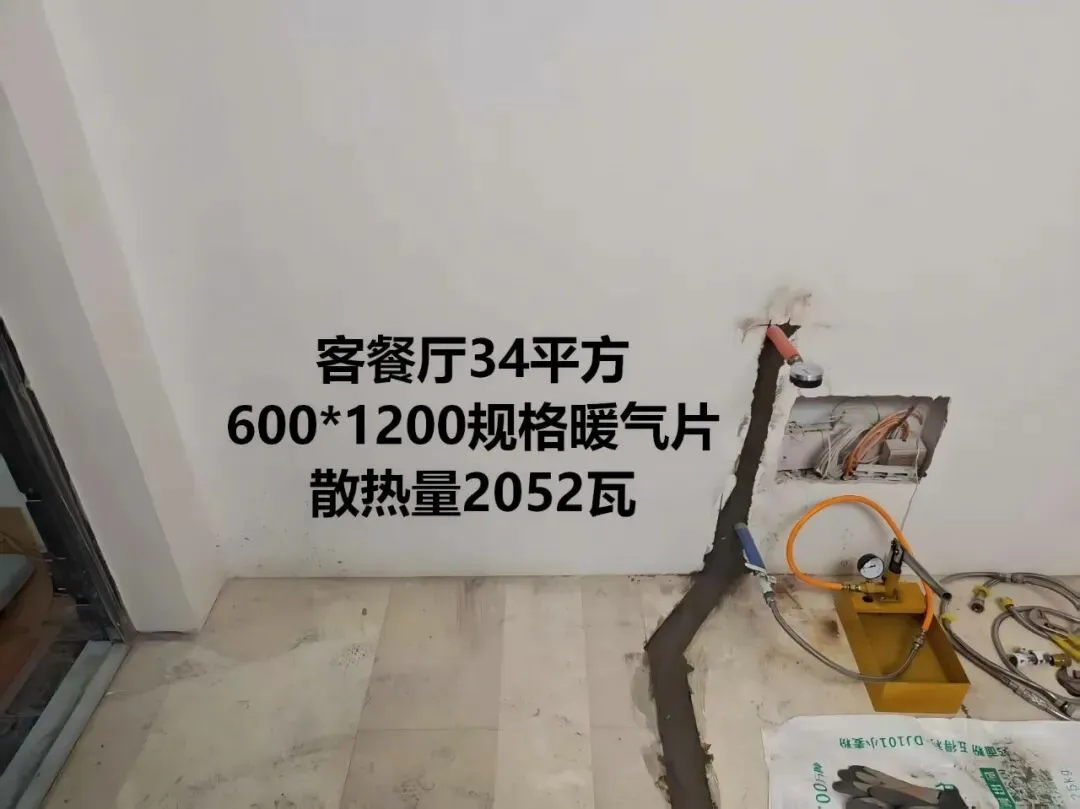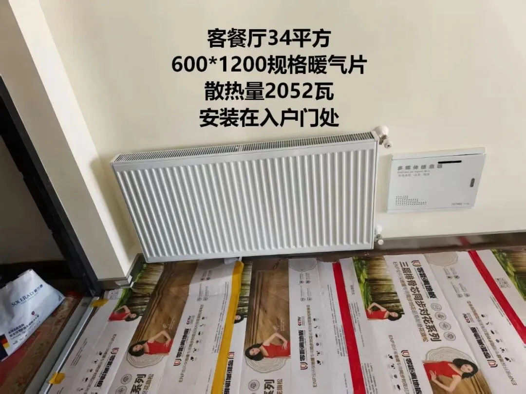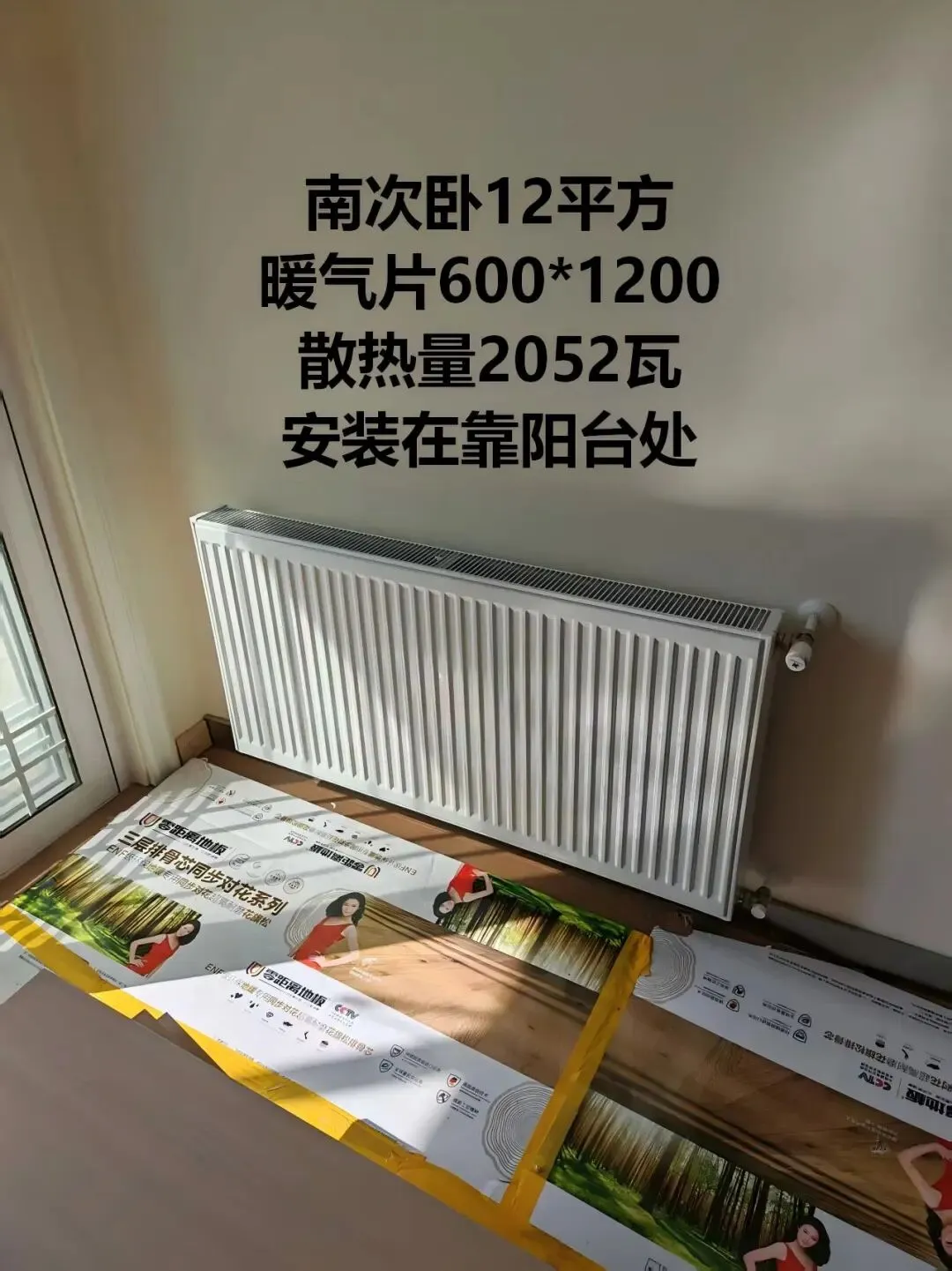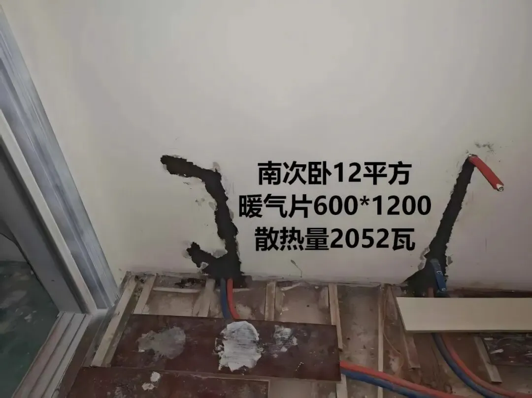 •南次卧 12㎡:600×1200,散热量 2052W,靠阳台安装