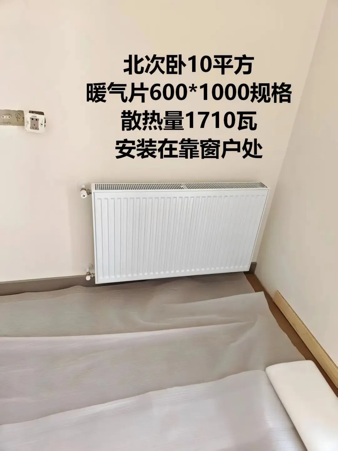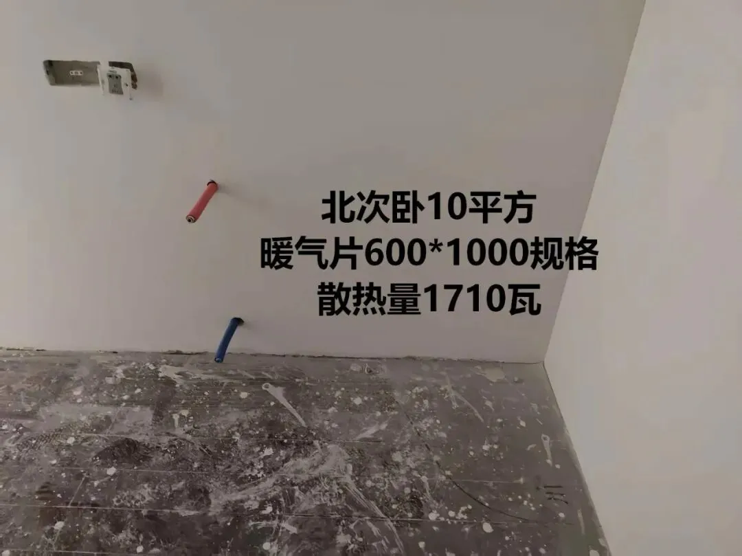 •北次卧 10㎡:600×1000,散热量 1710W,靠窗安装
