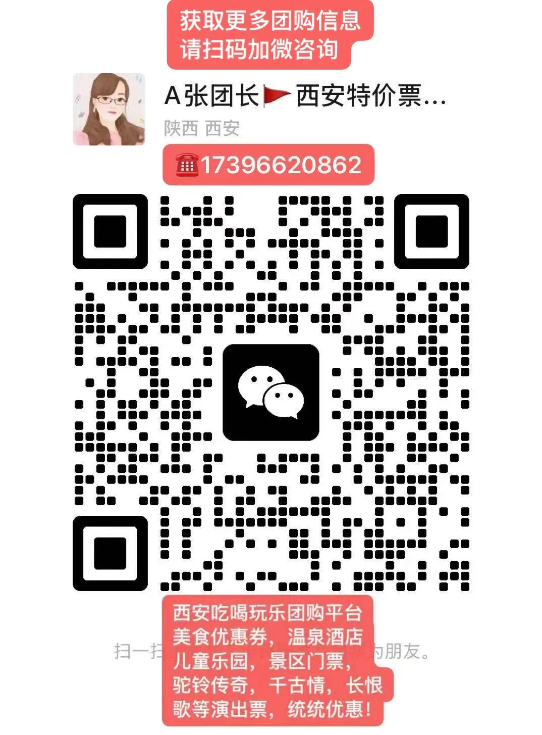 如果你来西安旅游,可以加我微信,买门票可以找我,有优惠!