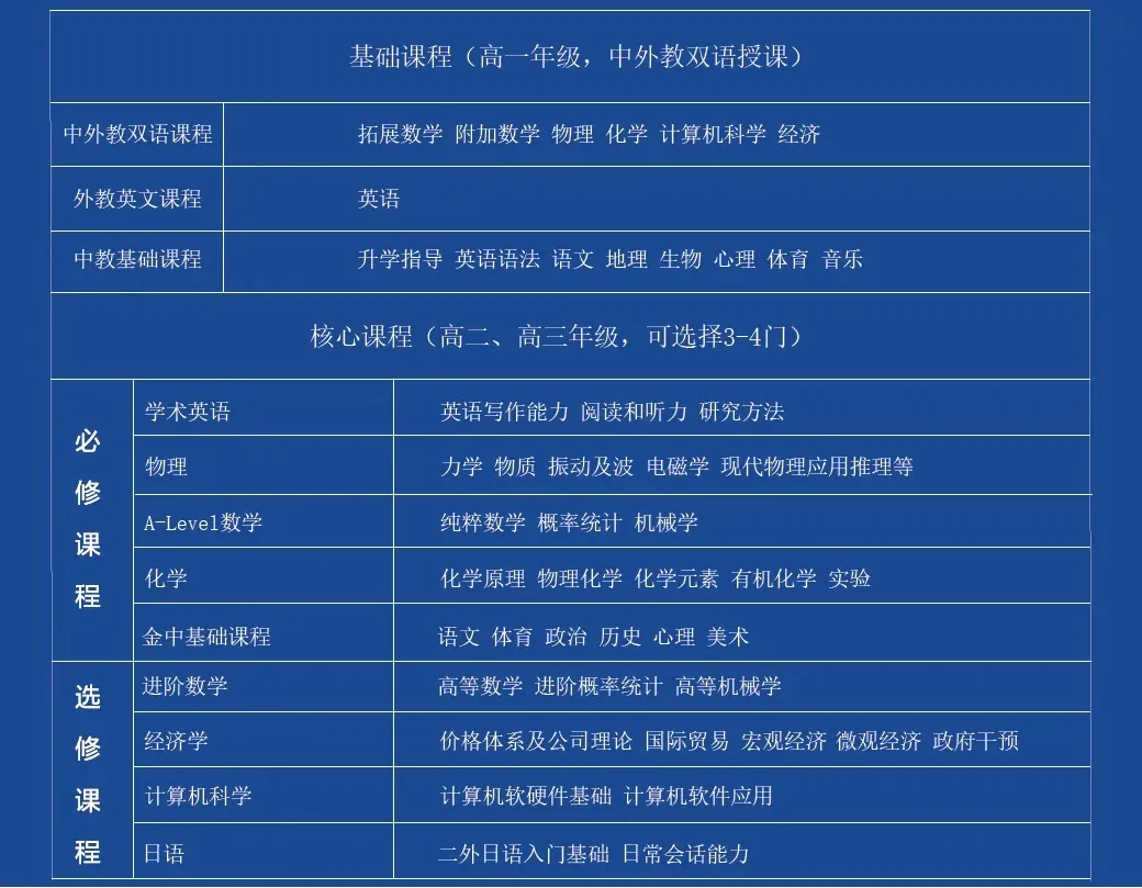 基础课程班(高一)+核心课程(高二、高三)(可选择3-4门)