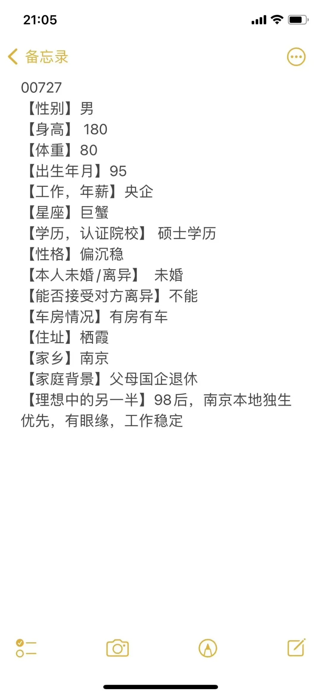 >南京脱单|95年,男,身高180,硕士学历,央企工作,南京本地人,目前在栖霞区