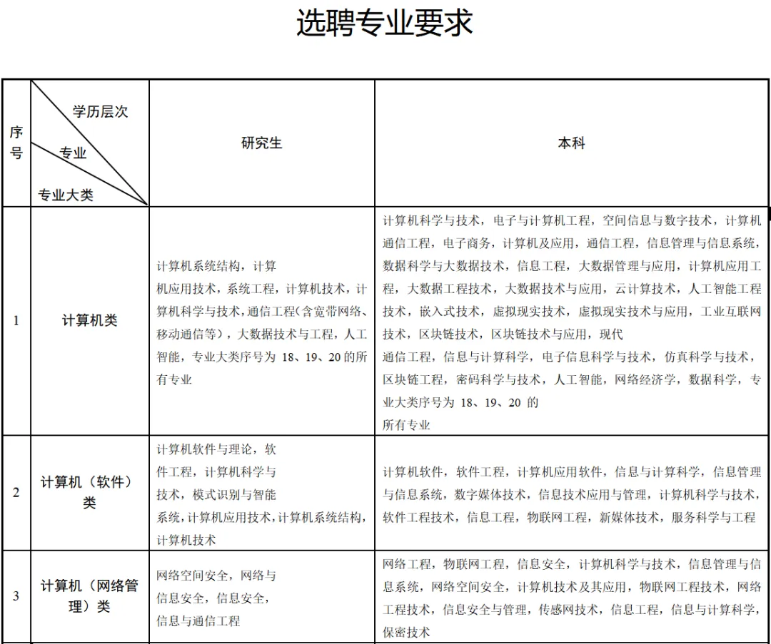 2.选聘专业要求