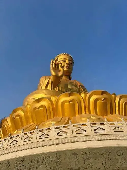 拍照: 大伊山顶的佛像,下午四五点光线最好,侧逆光拍过去,佛像边缘有金边,神圣感拉满。