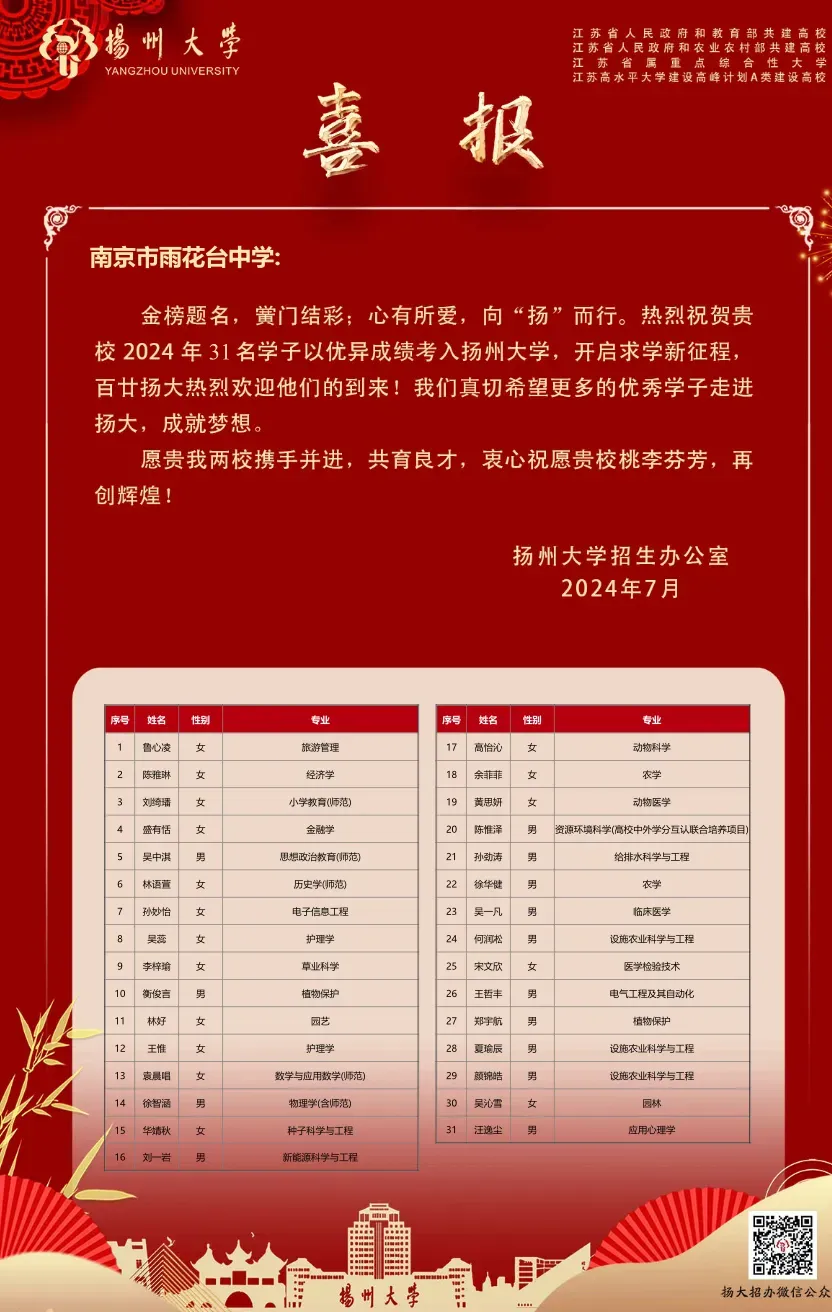 在这样一支强大的教师团队引领下,学校的教学质量始终保持在南京市前列。无论是高考成绩,还是学科竞赛,雨花台中学的学生们都屡创佳绩,屡获殊荣。在这里,每一位学生都能在优秀的教师引领下,找到属于自己的方向,迈向更加辉煌的人生!