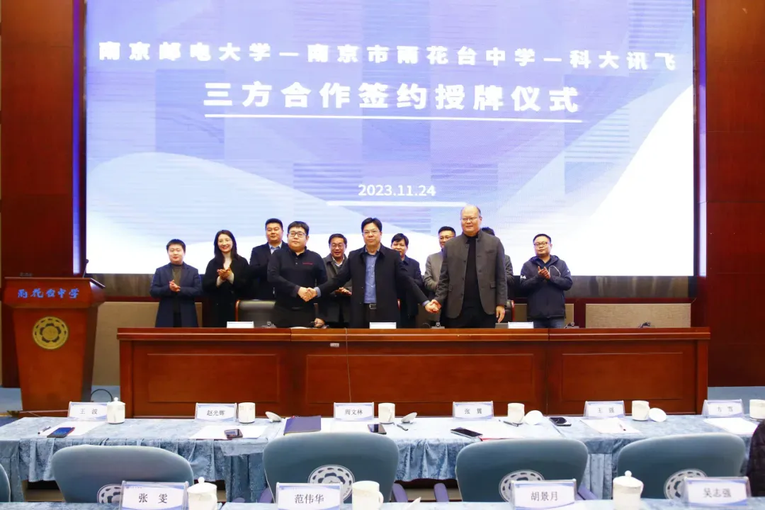 围绕人工智能的特色课程开发和创新型人才的协同培养,我校与南京邮电大学、科大讯飞签订三方合作协议,整合优质资源,创新人才培养模式,将雨中打造成人工智能特色教育基地,形成围绕人工智能的系统性人才培养体系。