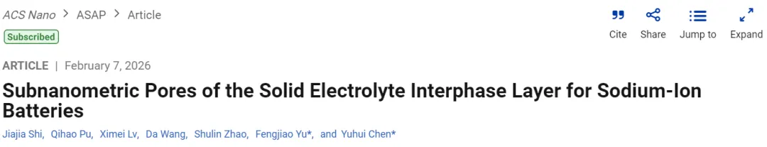该成果以“Subnanometric Pores of the Solid Electrolyte Interphase Layer for Sodium-Ion Batteries”为题发表在ACS Nano上。