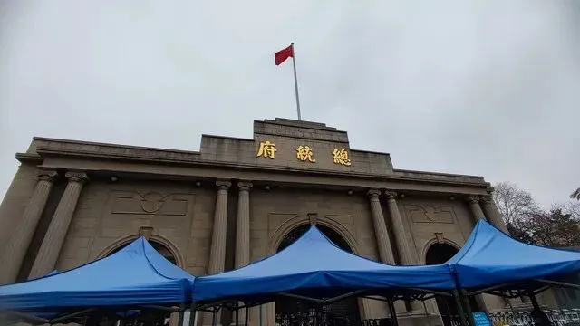 五星红旗飘扬的总统府。