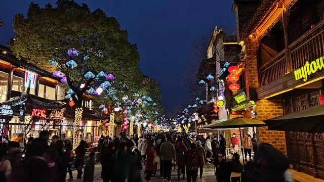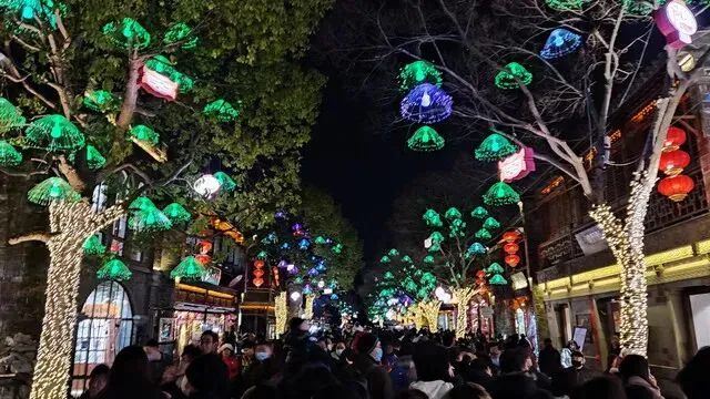人山人海,和全国其它地方的仿古商业街没啥不同,夜景漂亮,建议夜游 (春节期间有彩灯,平时不知)。