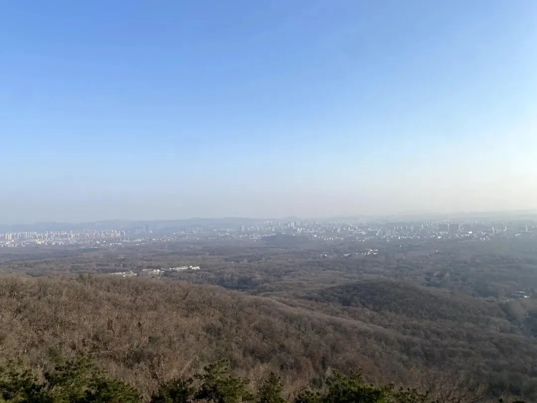到山顶还有大概半小时可以逛。继续往上走,有个免费景区,里面有观景平台。再往东还有个更高的山顶,看着也有人爬上去,我们今天有点累,就没继续了。旁边KFC买了两支冰淇淋,在平台上一边吃一边看风景。虽然有雾霾,但视野还是挺开阔的,小朋友吃着冰淇淋,开心得很。