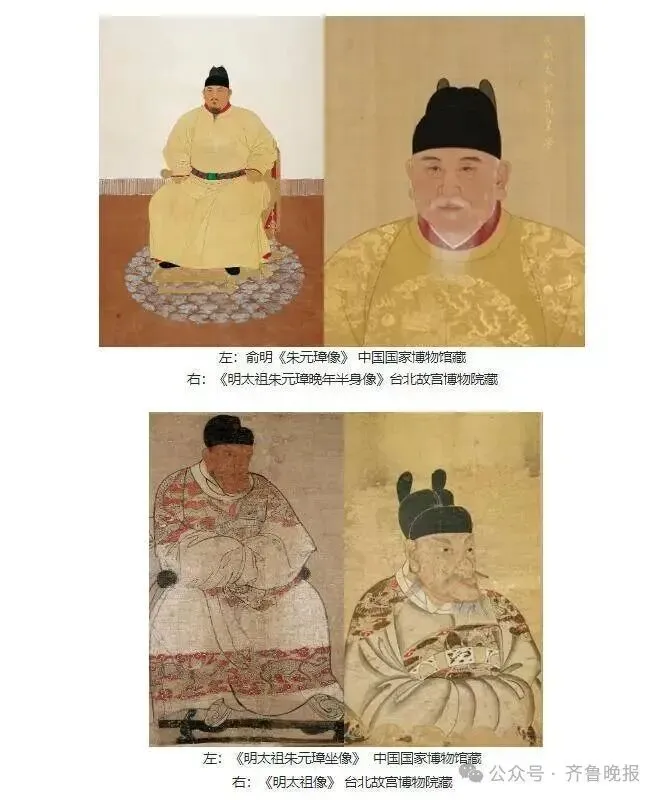 记者查询资料了解到,中国国家博物馆和台北故宫博物院都保存着朱元璋像,但传世的朱元璋肖像一直存在两种截然不同的版本。故宫博物院发布的《明清肖像画的传移摹写与鉴定故宫研究院学术讲坛第七十六讲》中提到,在清人胡敬的《南薰殿图像考》中,记载的朱元璋画像就有十二帧之多。这些画像大致可分为两类。一类为天庭饱满,俊朗和煦,如台北故宫博物院所藏明太祖全身坐像及晚年半身像等,均属此类,称为正形像;一类为下颚凸出,脸颊拉长,面颊布满黑痣,称为异形像。