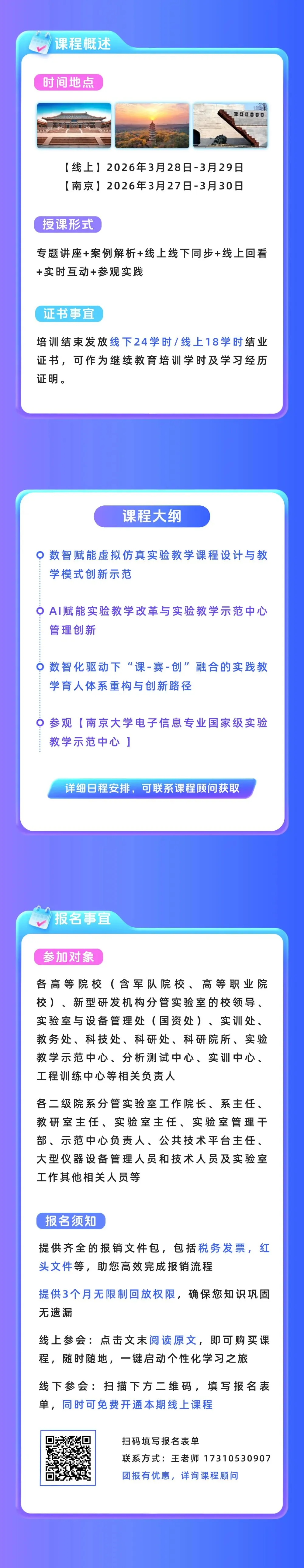 >【3月27日-3月30日 | 南京】数字化转型下实验教学创新能力提升与示范中心内涵式建设研修班(第二期)