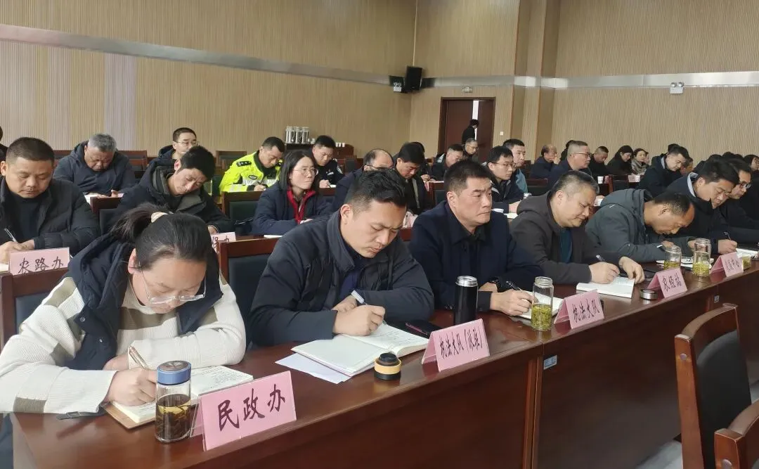 街道全体党政领导、各村党总支书记、各部门及圩局水库负责人、双管单位负责人参加会议。会前,全体参会人员观看了警示教育片。