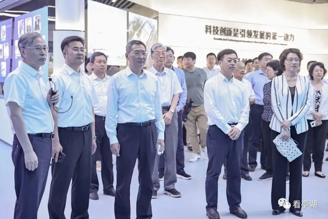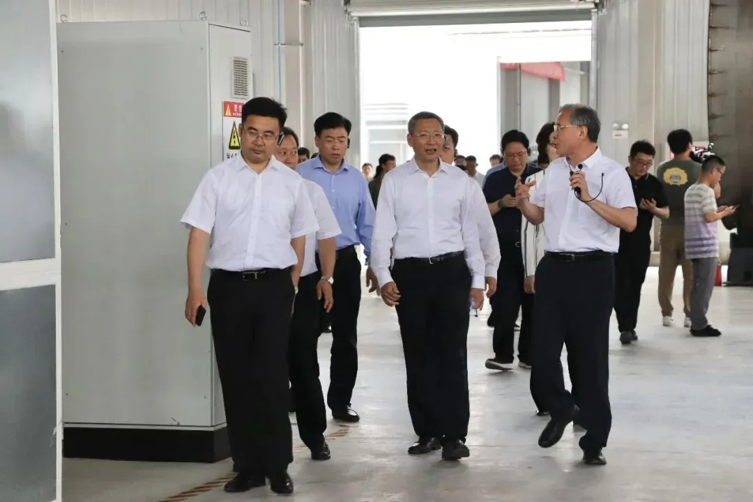 南京大学盐城环保产业创新基地是此次观摩项目之一,2021年6月29日上午,盐城市委书记、市人大常委会主任戴源、盐城市委副书记、盐城市人民政府市长曹路宝携市委市政府四套班子成员,各县区、各部门主要负责同志共计一百八十余人莅临南京大学盐城环保创新基地考察观摩。国家工程院院士张全兴、南京大学盐城环保技术与工程研究院院长李爱民、创新基地负责人及院领导、基地入住企业主要负责人参与接待。戴书记、曹市长一行首先参观了一号研发大楼展示厅,在展示厅内,李院长向戴书记简要介绍了南大盐城环保院建院十年以来的发展历程和取得的成绩,对盐城市各级领导在研究院发展过程中给予的关心支持表达了感谢。随后,李院长陪同戴书记、曹市长一行参观了二号、三号厂房,戴书记仔细询问了厂房设备生产情况,对李院长团队扎根盐城,深入推进校地合作,努力促成科技成果转化与产业化的成绩表示肯定。