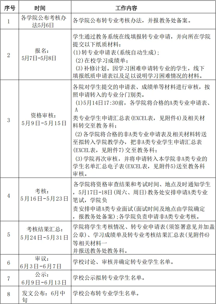 南京林业大学2025年全日制本科生转专业日程安排: