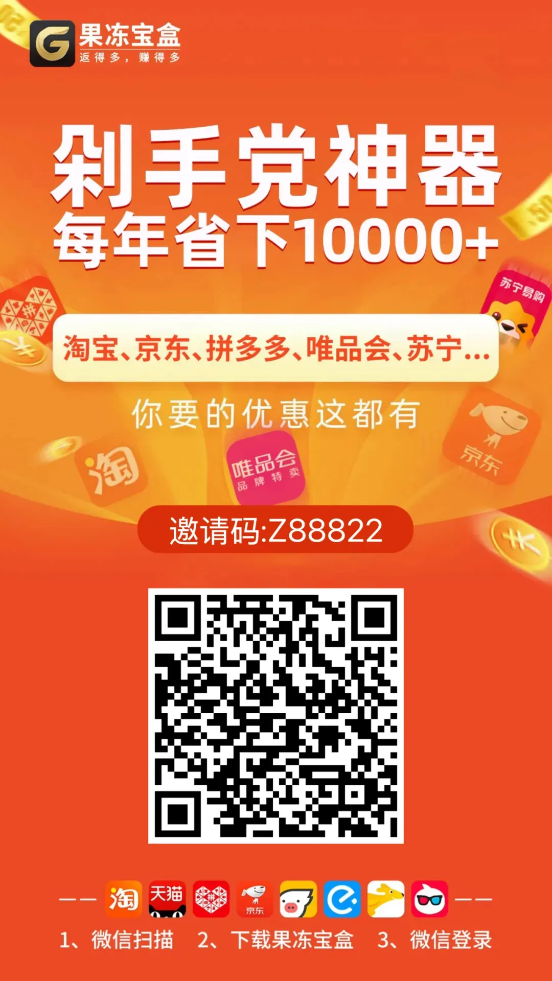 扫码下载APP,购物可返利