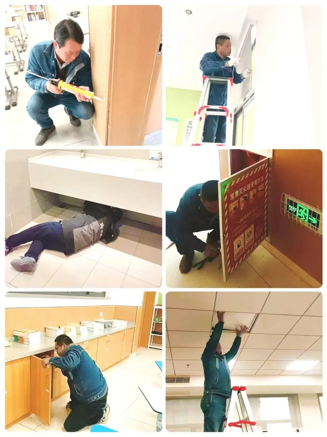 日常设施检修:对教室门窗、桌椅、灯具、开关、水龙头等逐一排查维修,及时更换损坏部件,消除安全隐患。
