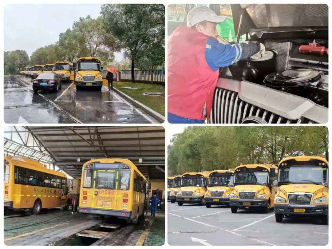 校车卫生安全检查:对所有校车进行车况检修、车内清洁、座椅消毒、安全设施排查,守护学生上下学平安。