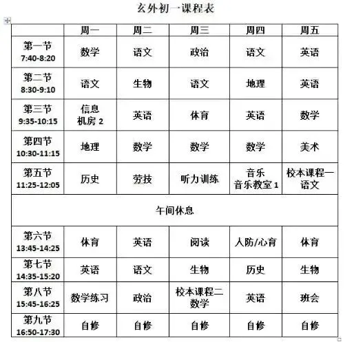 玄外晚上18:20放学,有晚自习,晚自习初一19:30结束,初二20:10结束,初三20:30结束,玄外没有住宿。晚自习自愿选择参不参加,开学第二个月开始上晚自习,周六上午半天补课。