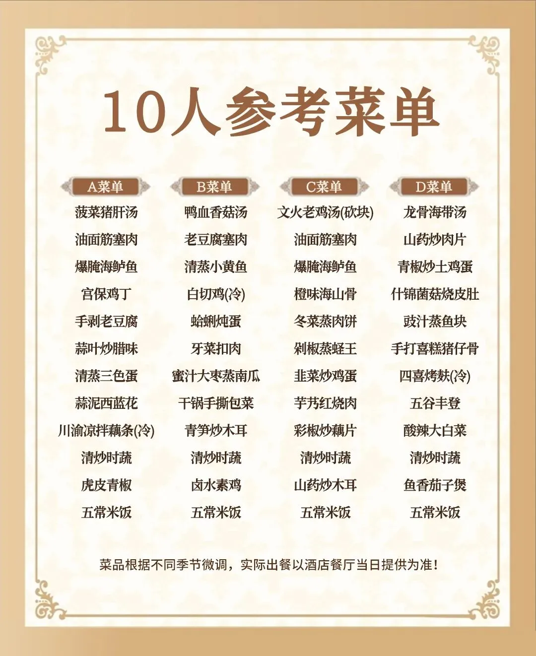 8.本套餐桌餐.根据人数增加或者减少菜肴!餐和住宿为打包价格,不用不退本链接餐单仅供参考具体以当天到店为准!