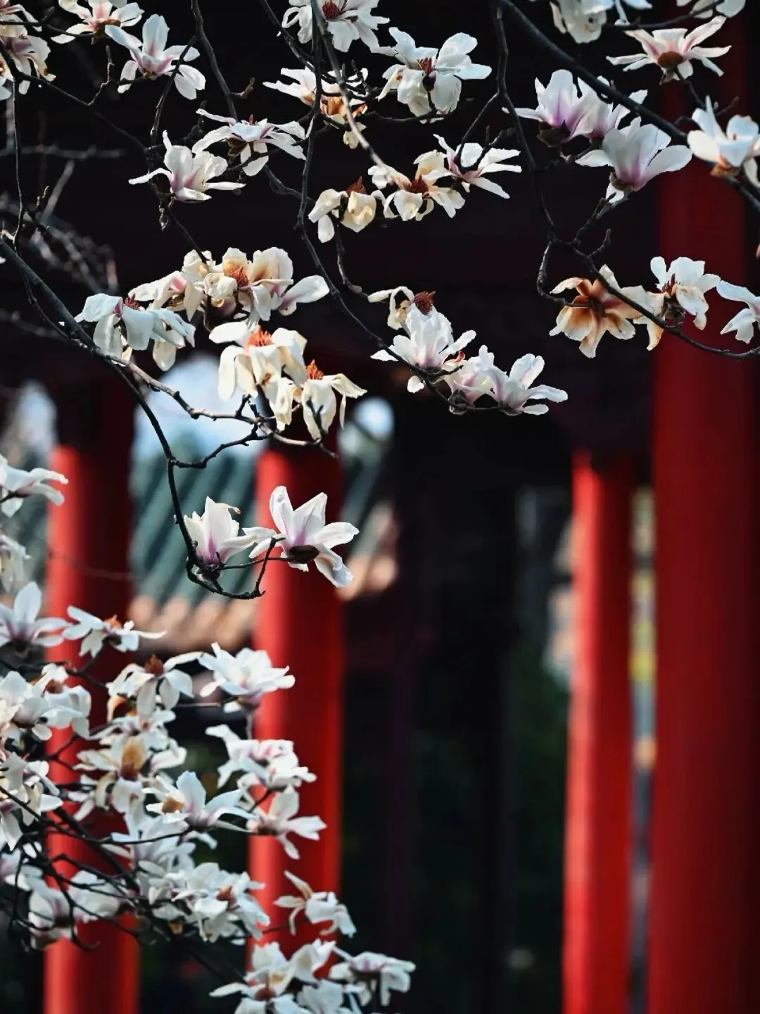 ✅朝天宫:说是南京玉兰的天花板,没人反对吧?朱红宫墙前的玉兰,怎么拍都像明信片