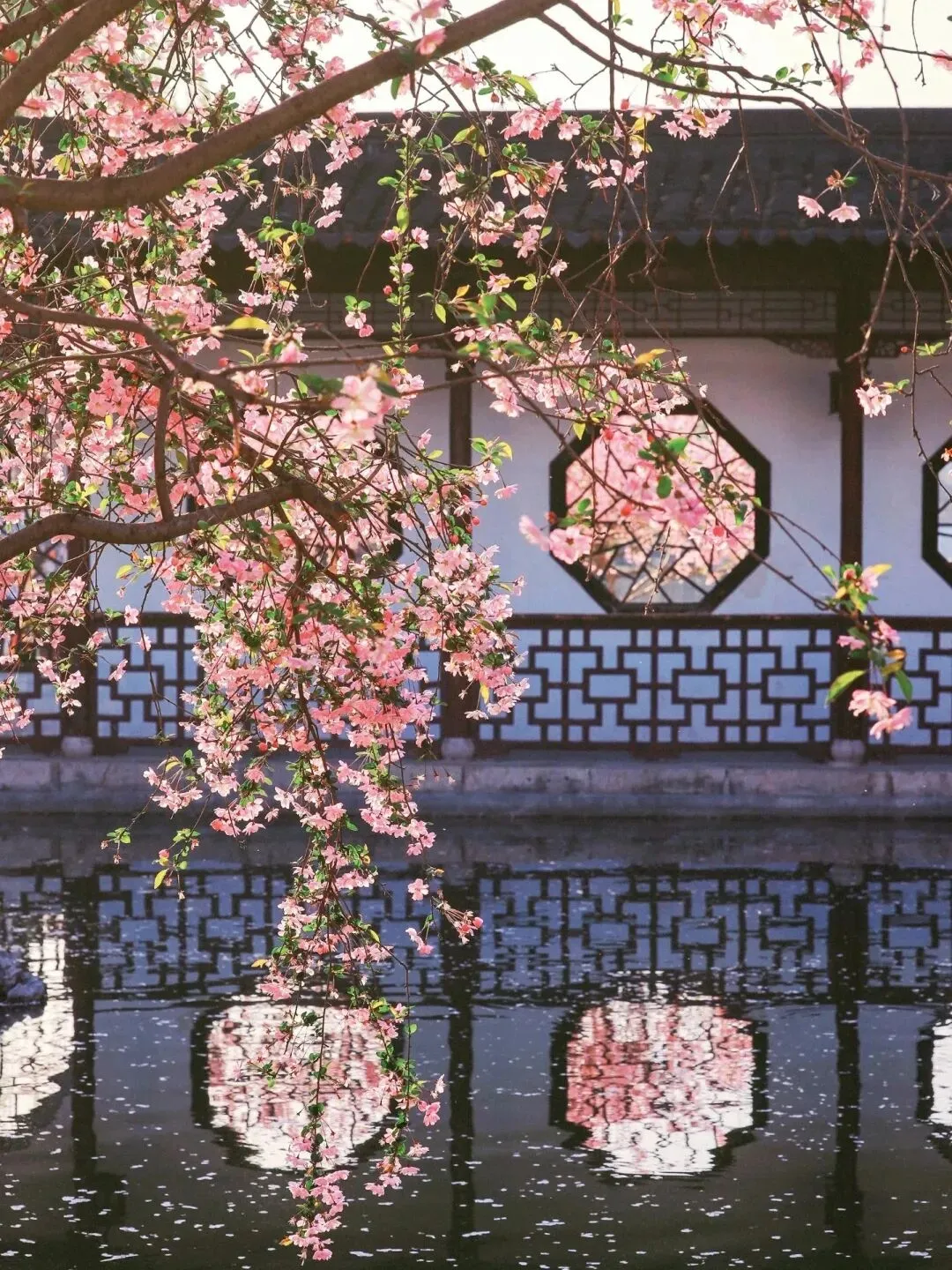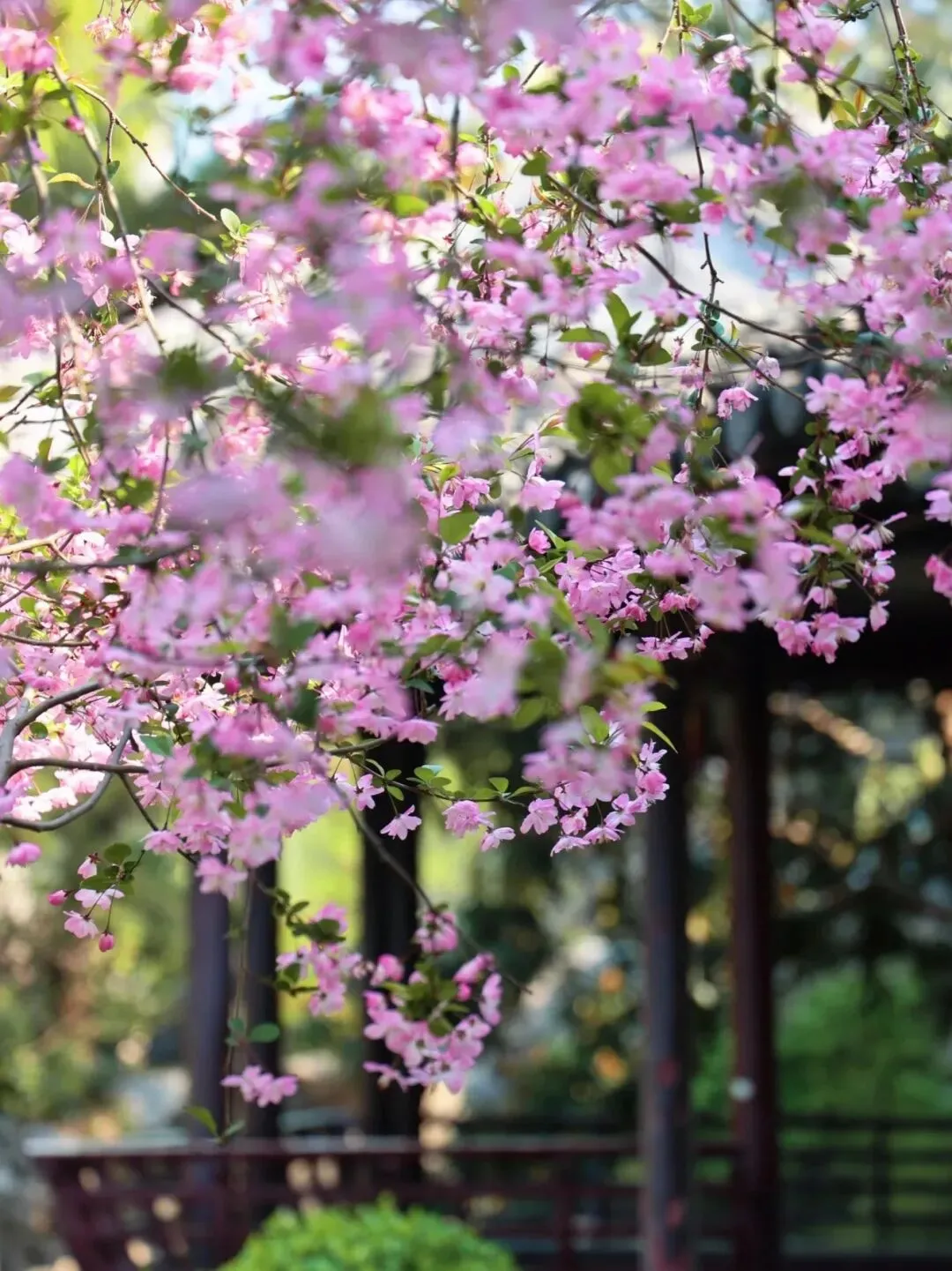 ✅瞻园:古典园林里的海棠,被假山、亭台衬得更有韵味,花开时,园子里一步都不舍得走快