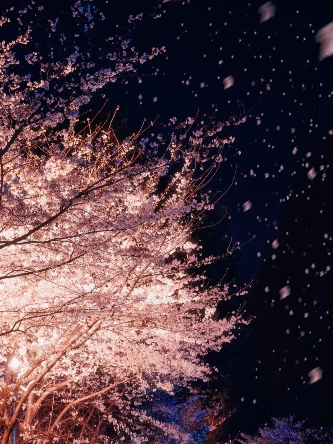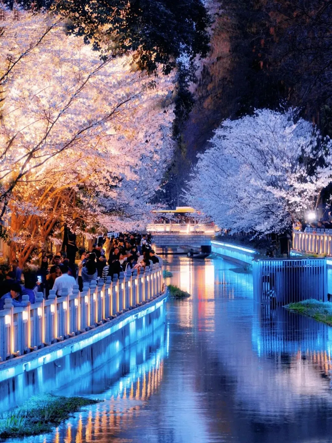 ✅珍珠河:夜樱比白天更梦幻,灯光一打,整条河像流淌着粉色星河