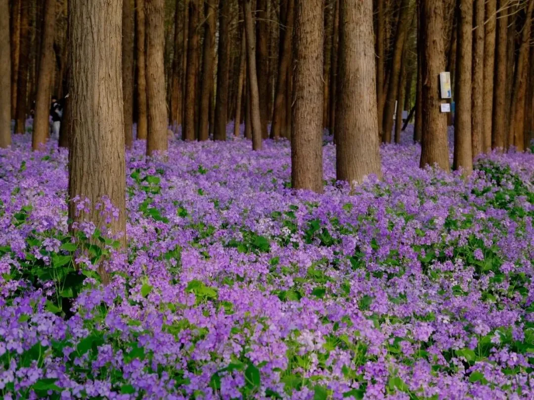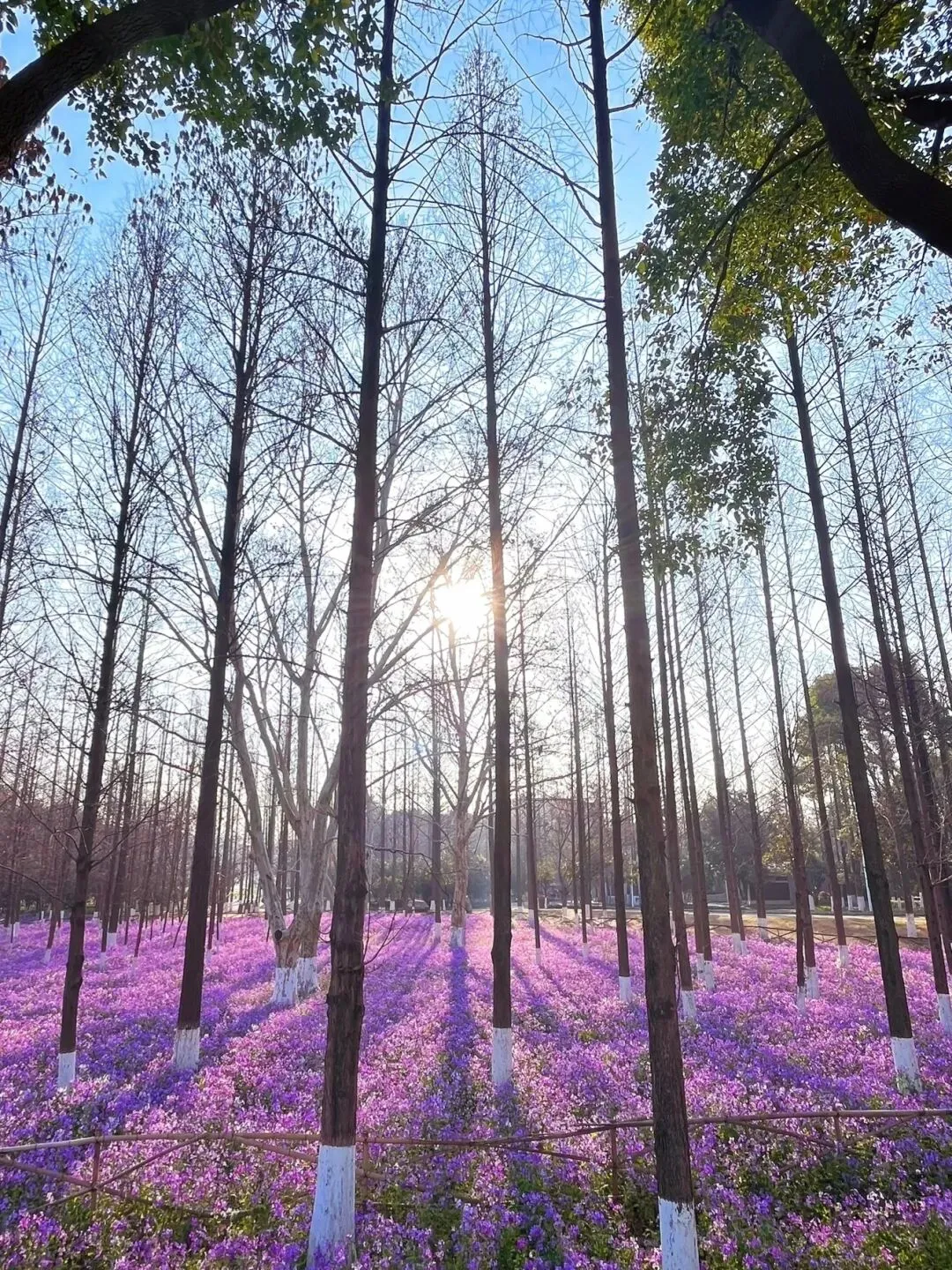 ✅中山植物园南园:成片成片的二月兰,开得肆意,带块野餐垫,能在花海里躺一天