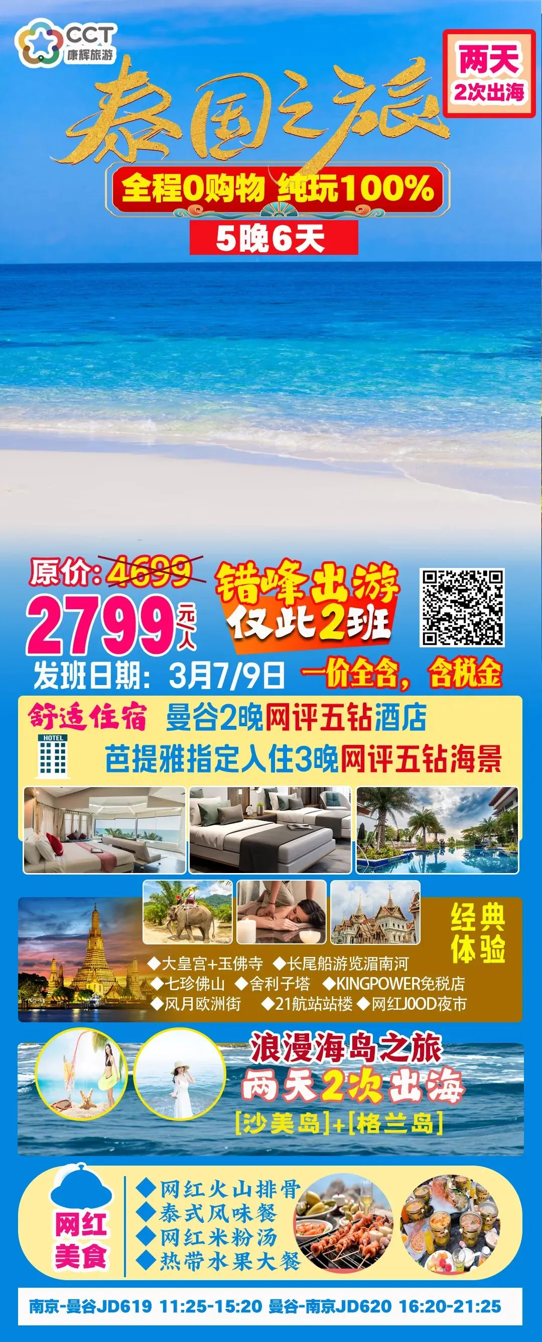 南京出发泰国特价5晚6天,纯玩团,无购物,全程入住网评五钻酒店,打卡泰国特色美食!