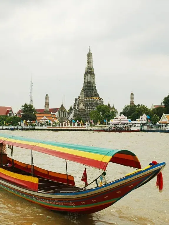 历乘坐泰国最古老的交通工具长尾船,狂飙在泰国母亲河”湄南河“上,欣赏古老与现代并存的湄南河两岸风景,远观郑王庙。