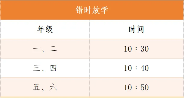 2.当日放学安排:为保障返校秩序,错峰放学,各年级具体放学时间如下: