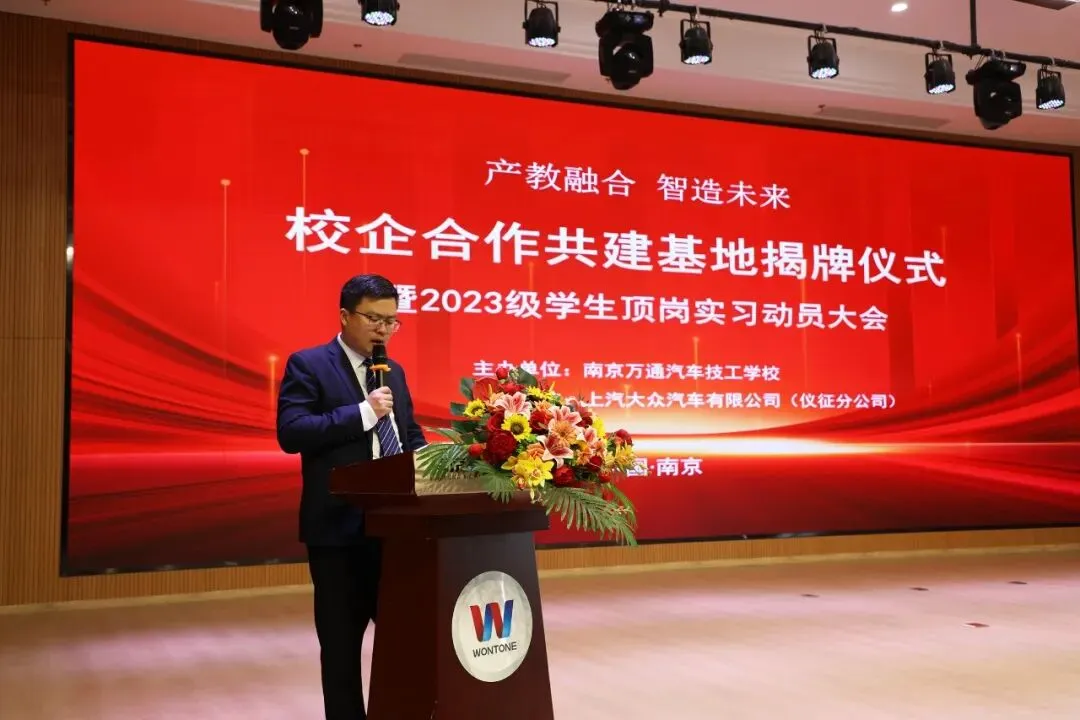 仪式过后,校区叶主任为23级汽车专业学生作顶岗实习动员讲话,详细解读实习计划,着重强调了实习过程中的安全操作规范、应急预案及职业素养要求,要求学生以高度的责任心和积极的学习态度投入顶岗实习。杨助作总结讲话,对本次校企合作提出了新的要求与指导方向,同时鼓励全体实习学生珍惜实践机会,在岗位上认真工作、踏实学习,将南京万通学子的专业素养和优良作风充分展现出来。