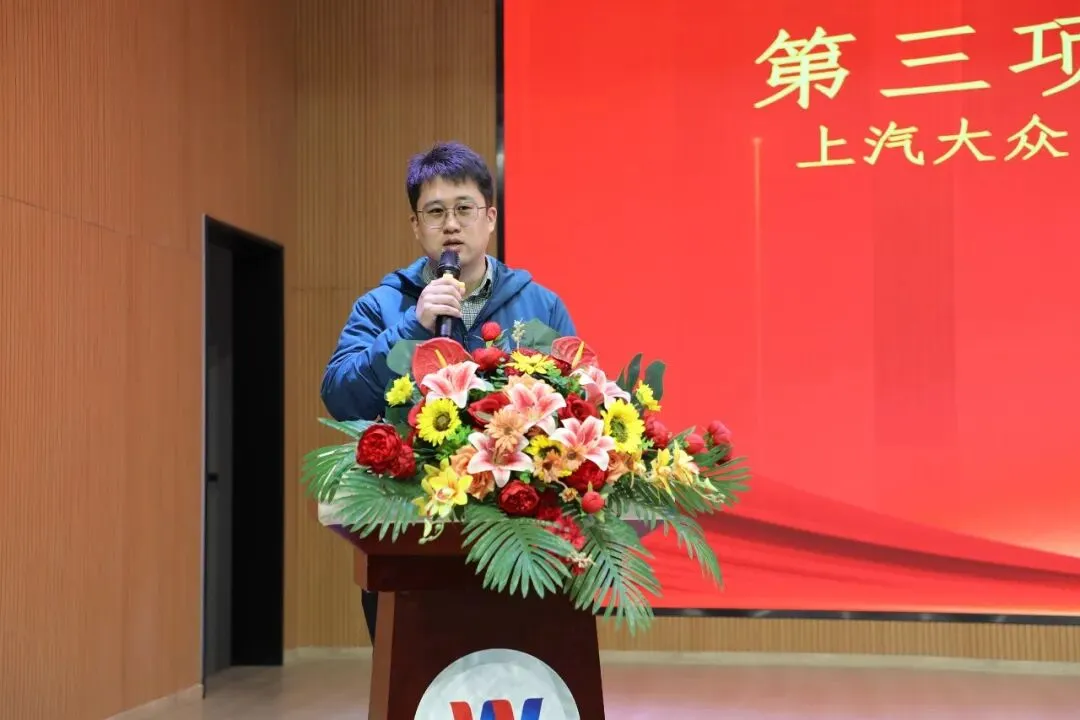 活动在主持人的开场介绍中拉开帷幕,教务处殷主管首先致欢迎辞。他指出,校企合作是职业教育办学的核心举措,也是学校打造毕业与就业衔接优势的关键路径,详细解读了上汽大众实训基地的建设规划,强调基地将引入企业标准与真实项目案例,为汽车、智能制造等专业的课程体系优化提供强力支撑,助力专业实训条件与师资水平双提升。上汽大众(仪征分公司)人事经理作为企业代表发言,深入阐述了校企合作的核心价值,结合行业发展趋势,明确了基地对新能源汽车维修、智能网联技术等领域技能人才的需求,同时强调新时代汽车人才既要具备车辆技术、故障排除等“硬技能”,更要拥有团队协作等 “软素质”。