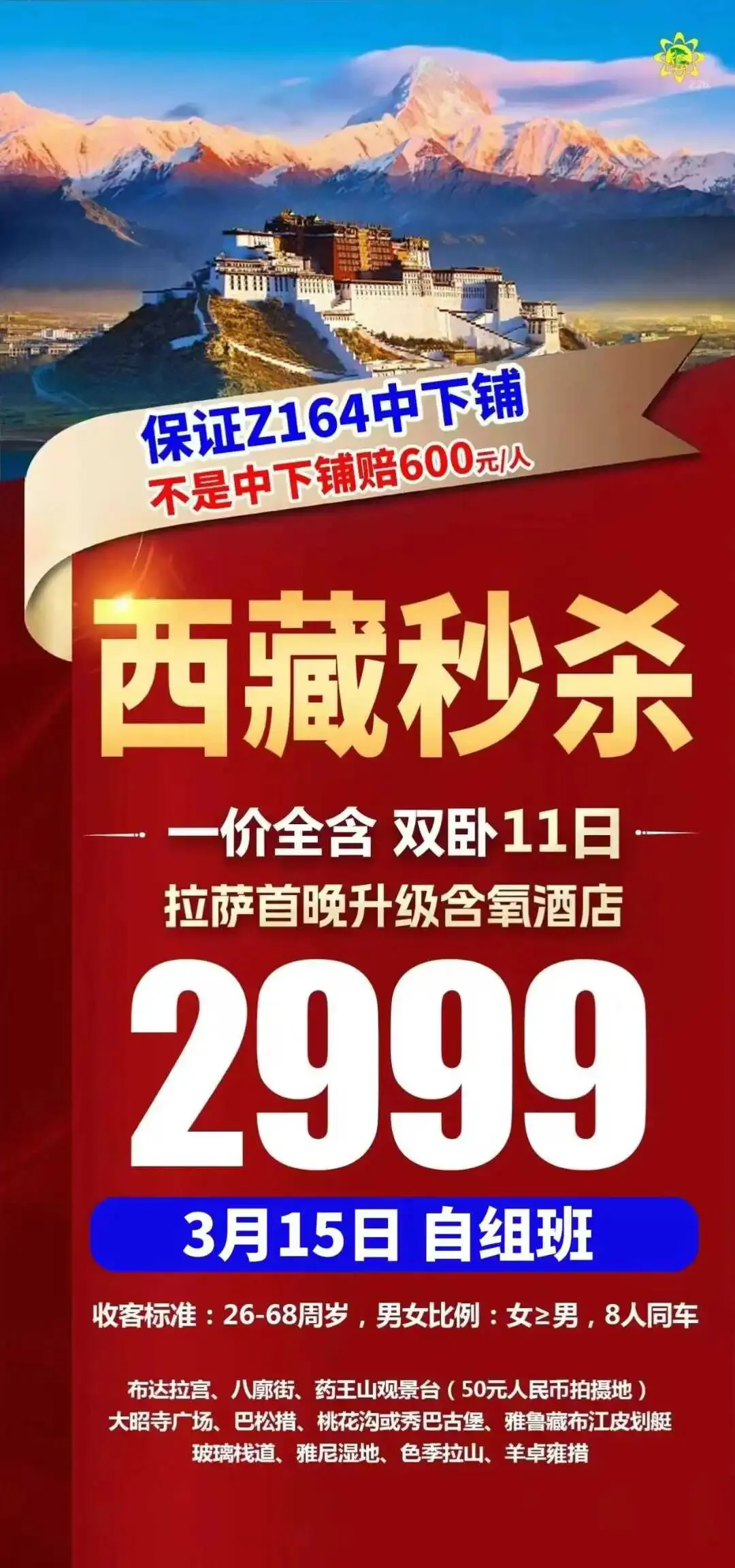 【西藏自组班】3月15号南京出发西藏双卧11天2999元