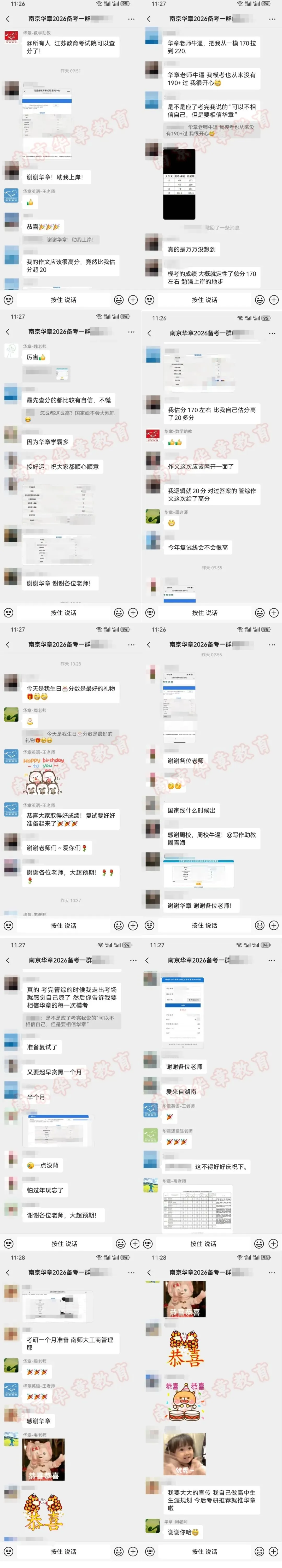而在南京华章,这一天不仅是查分的日子,更是一场“丰收的庆典”。从上午九点半成绩陆续可查开始,华章老师们的手机就没停过,满屏都是“老师我过线了!”“高分上岸!”的喜讯。