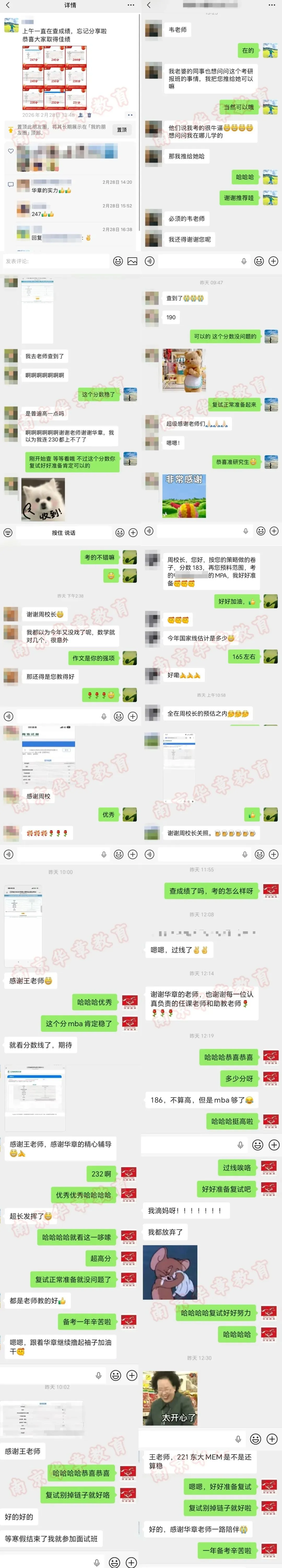 出分时刻,华章学员群里热闹非凡,大家分享着自己的成绩和激动的心情,更让老师们动容的,是屏幕那头传来的真诚感谢。