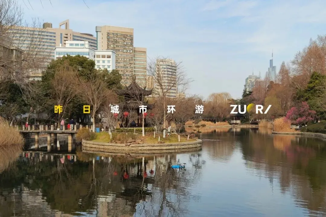 除了灯会之外,其余的行程也都在南京市区,伴随着天气走向由雨转晴,大致路线为:鸡鸣寺 - 玄武湖 - 河西CBD - 莫愁湖 - 古林公园 - 汉中门 - 新街口。在二月下旬,梅花也开始绽放,在古林公园的梅岭内有一大片的粉色花海,因为山坡地势的起伏,显得尤为壮观,这里的空气中处处弥漫着香气,再加上当时天空开始放晴,一瞬间就变得豁然开朗了起来。2025