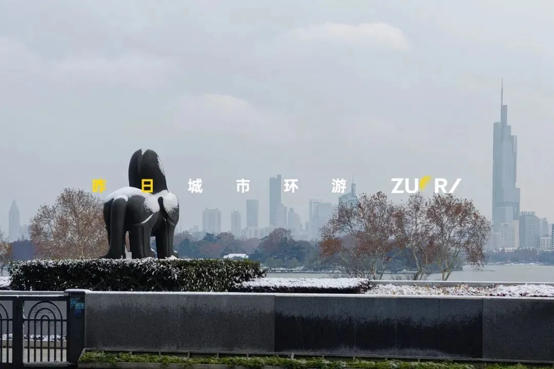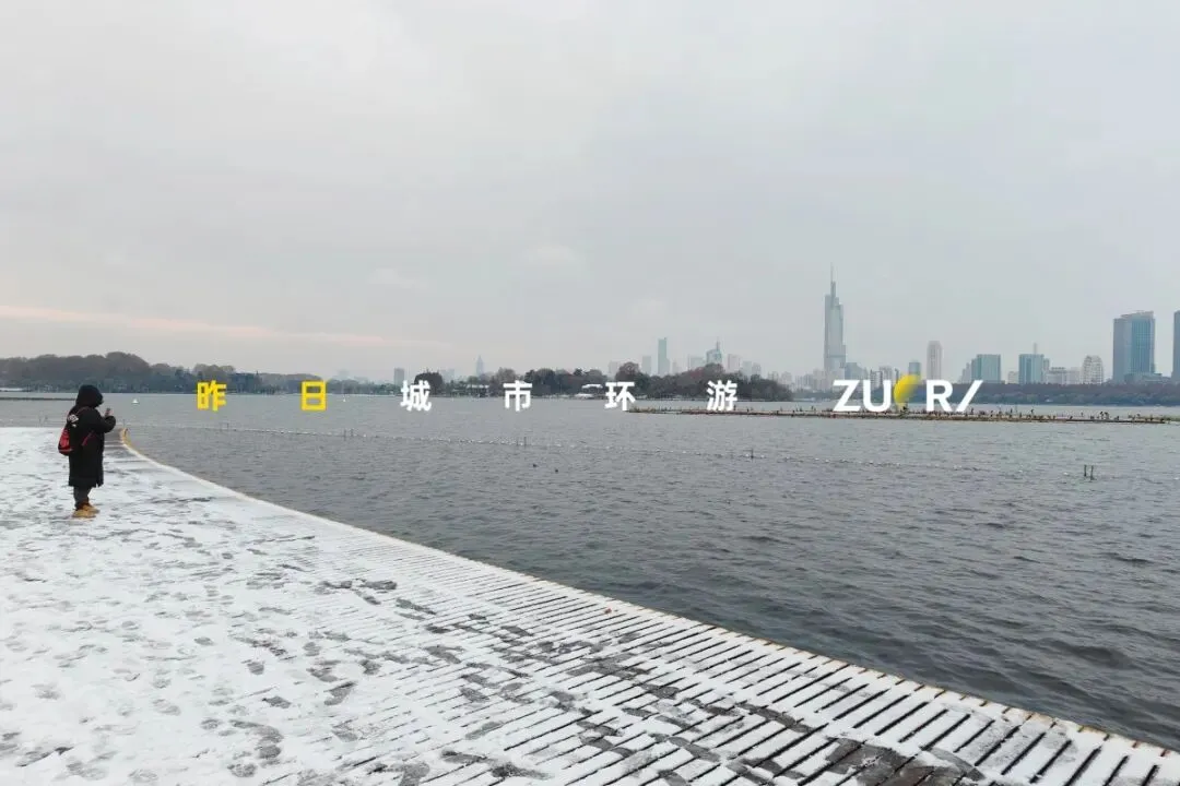 2023的年末,在南京中转的时候意外地发现下雪了,得益于南京站得天独厚的地理位置,一出站就能看到玄武湖的景观;同时也在那年遇见了夜幕之下南京南站喜玛拉雅中心起起伏伏的 “山峦建筑” 。