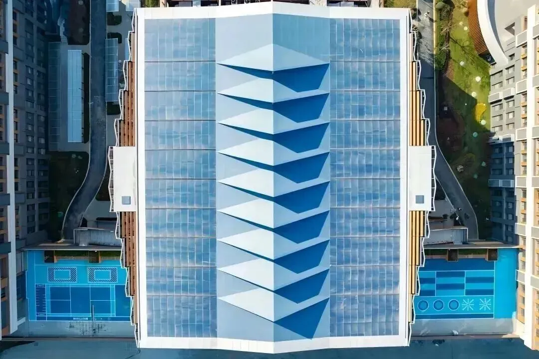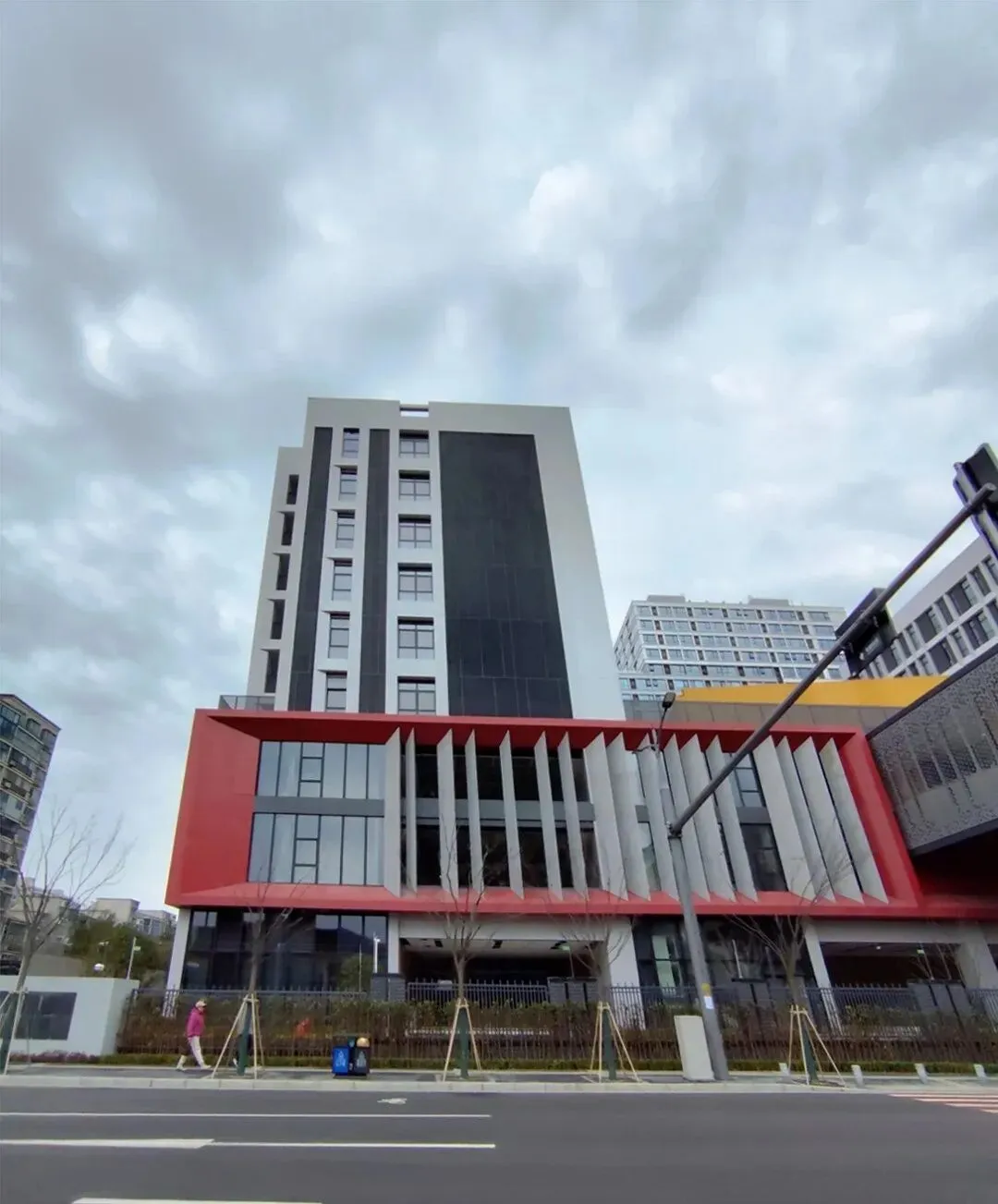 其中,A地块内布局有教学实验楼、风雨操场与食堂、教学综合楼,B地块则设有学生宿舍、礼堂及国际交流中心,功能分区明确,满足教学、生活、交流等多元需求。绿色低碳是这座校园的鲜明底色。项目铺设了1020平方米的屋面光伏玻璃,每年可发电17万千瓦时,主要用于风雨操场、地下车库等公共照明,预计每年减少碳排放约100吨。