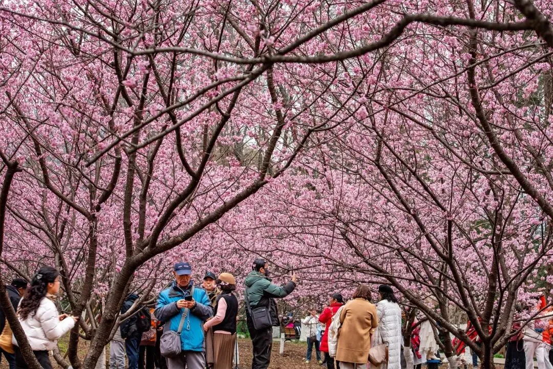 樱花品种按花期分为早樱、中樱与晚樱,南京地区最早进入花期的早樱品种椿寒樱,已于2月24日前进入盛花初期,开始可供拍摄,近几天进入盛花期,拍摄效果更佳。赏花客较为集中于中山植物园(北园)樱花大道,另外玄武湖公园由于小气候的原因,开花较城外的中山植物园稍许早些,有少量分布于樱洲樱桥畔,挂的牌子是“初美人樱”,其实与中山植物园挂牌“椿寒樱”是一个品种,只不过叫法不同而已。