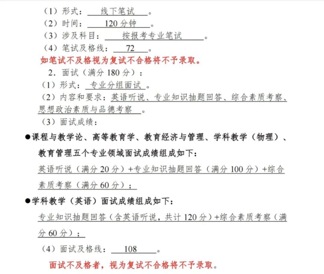 内容:教育管理专业综合笔试,满分120分,考试时间120分钟,及格线为72分。笔试内容主要考查教育管理领域的专业知识,如教育政策、学校管理、教育评价等。
